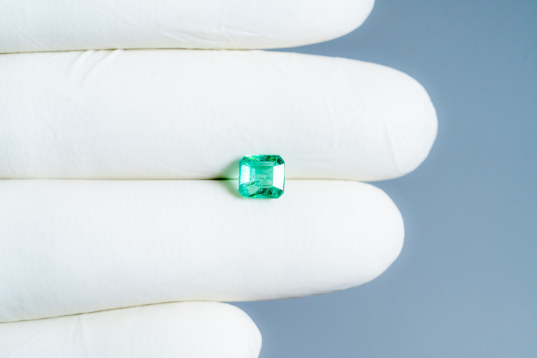 Buy one beautiful transparent 1.22 Carat/ 1.34 Ratti original Emerald online. It has a Emerald cut shape and a clarity grade of eye clean (evaluated at eye level), medium Green color intensity, and an excellent polish. The origin of this emerald is Zambia. This emerald stone is unheated & untreated and certified from IGI Govt. lab.
